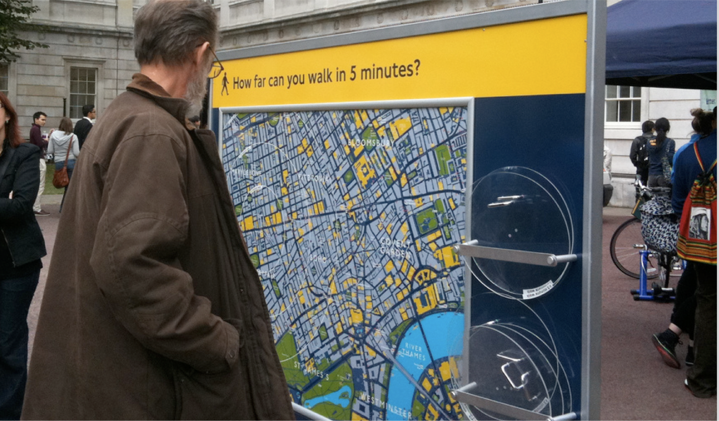 Nel 2004 il sindaco di Londra, Ken Livingstone, dichiarò l’obiettivo di rendere la città maggiormente a misura di pedone entro il 2015. A questo fine è stata lanciata l’iniziativa Legible London: un sistema di segnali pedonali che mostrano in quanto tempo si possono raggiungere i punti di interesse nelle vicinanze utilizzando la bicicletta o a piedi.